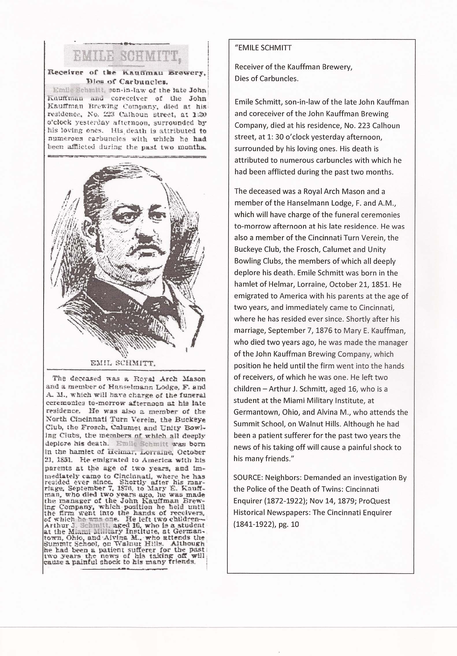 After my last Emile-related post, a genealogical angel (I’ll call her Betty) sent me a baker’s dozen of Cincinnati Enquirer articles written about Emile and his wife. Thank you again Betty – your kindness is very much appreciated! And thank you to the Kenton County Public Library for making these articles available online.