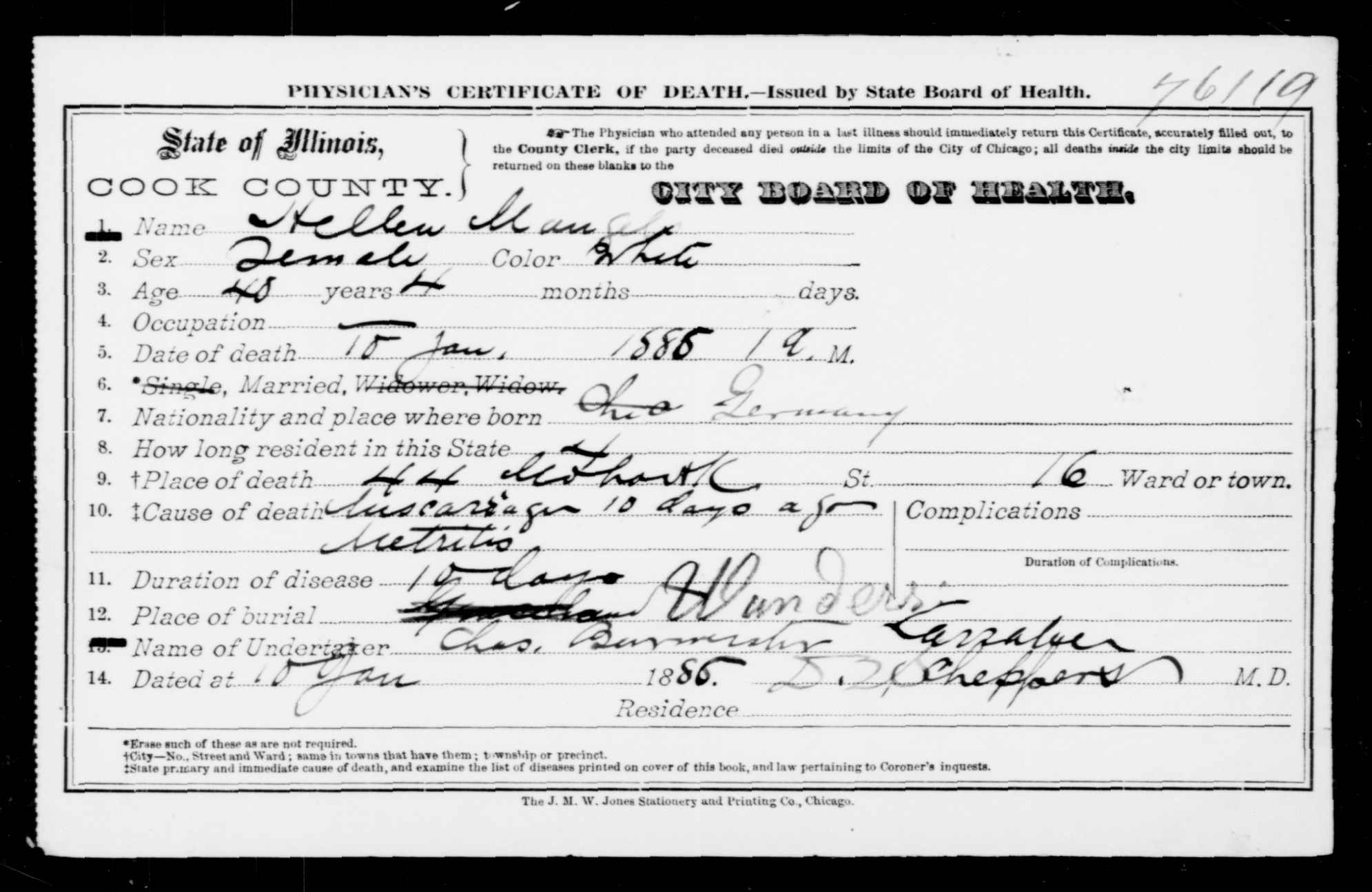 The street address listed on Helena’s death certificate matches the one listed for Hermann in the 1885 Chicago City Directory.