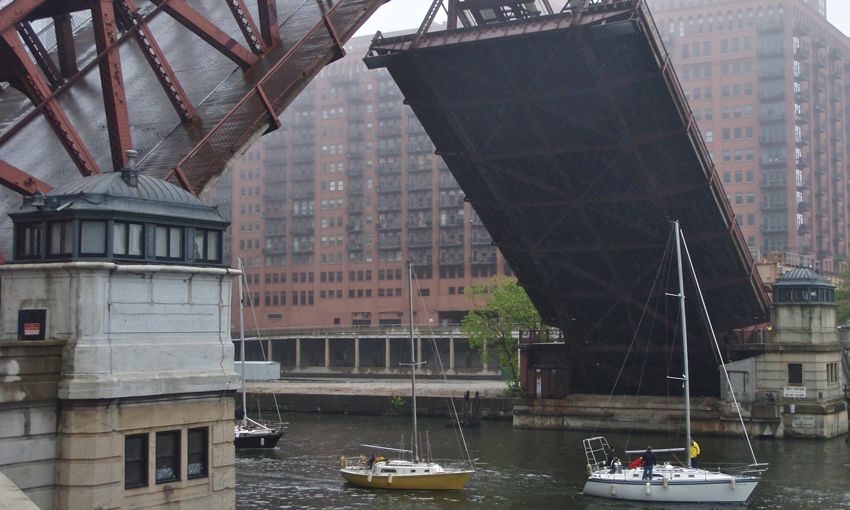 At 10 o’clock this morning a large crowd was collected on the northeast corner of the Lake street bridge, gazing excitedly over the railing at the water beneath the bridge. Many were swarming down the rickety ladder to the dock, where a few men were eagerly tugging at the chains and padlocks of a couple of slimy boats, half filled with water which were fastened to the piles.