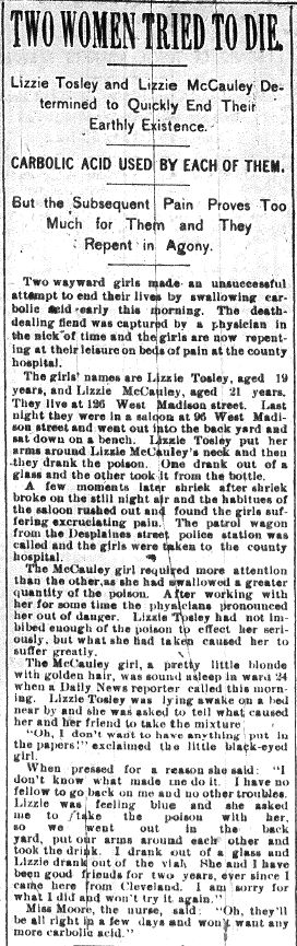 The following obituaries appeared on page 6 of the August 15, 1894 issue of the Chicago Daily News;