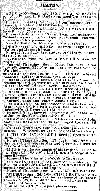 This day in 1894 was a surprisingly light day for notices of death published in the Chicago Daily News.