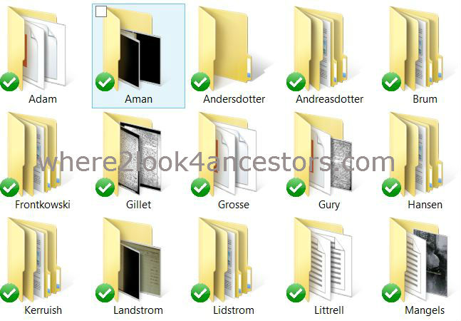 You may remember that in Fun with Genealogy Files Part 2, I shared my desire to create virtual place holders for each of my direct line ancestors that matched my paper file place holders. I also shared the disappointment I felt when I saw the computer files I had in place: