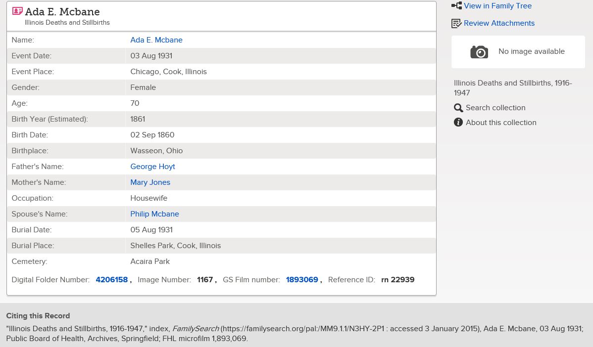 Mrs. McBane was still 70 when she died eleven years later in 1931: