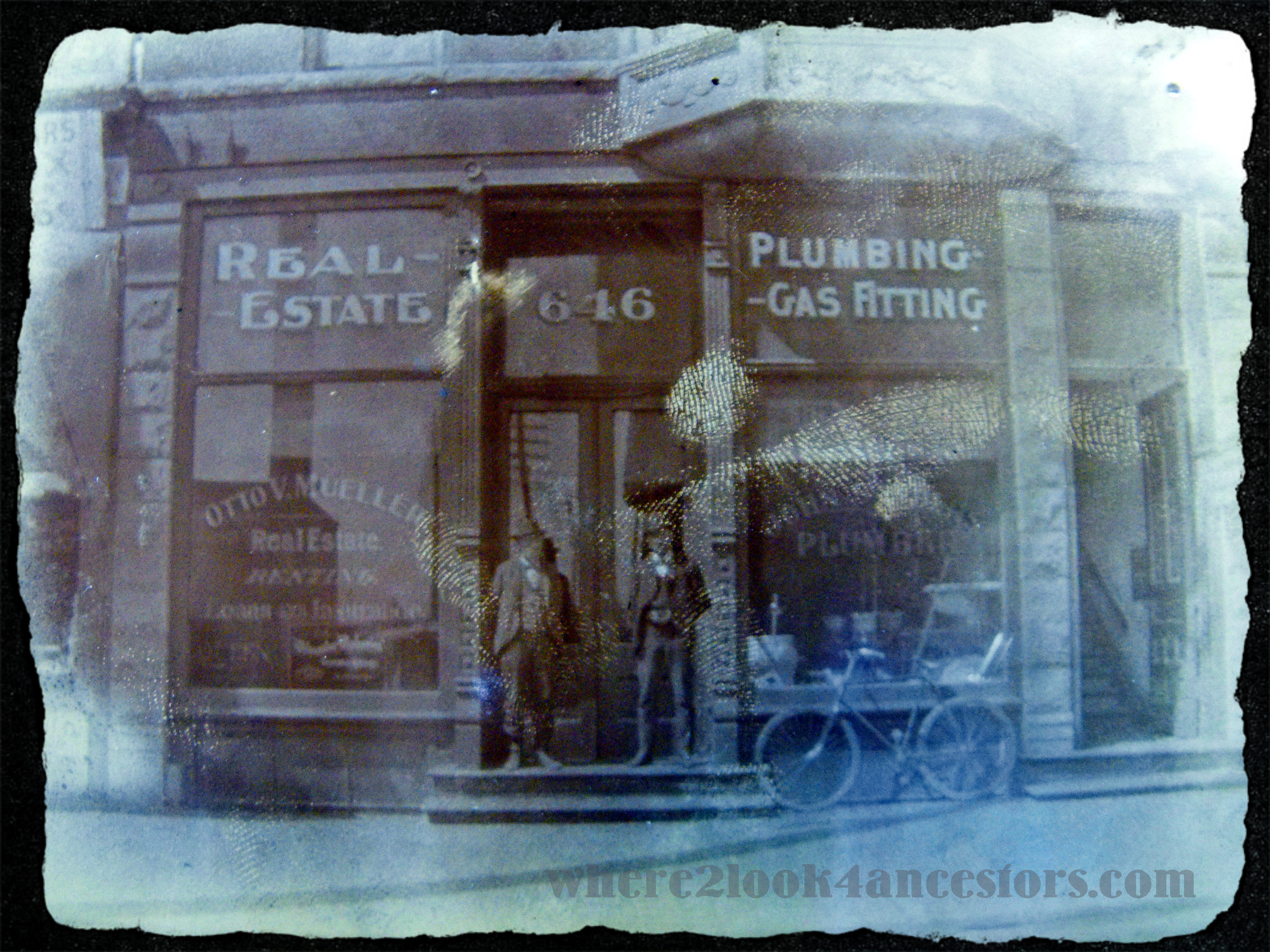 I couldn’t have been more excited to see this picture. I had often wondered if Alma Mueller was working in the same insurance office as her half-brother. Now I know it was more than just where Otto worked. It was a business he owned.