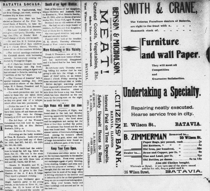 Because we had looked through a number of city directories before I turned to the newspaper on microfilm, we knew funeral homes as such didn’t really exist. Furniture stores provided undertaking services.