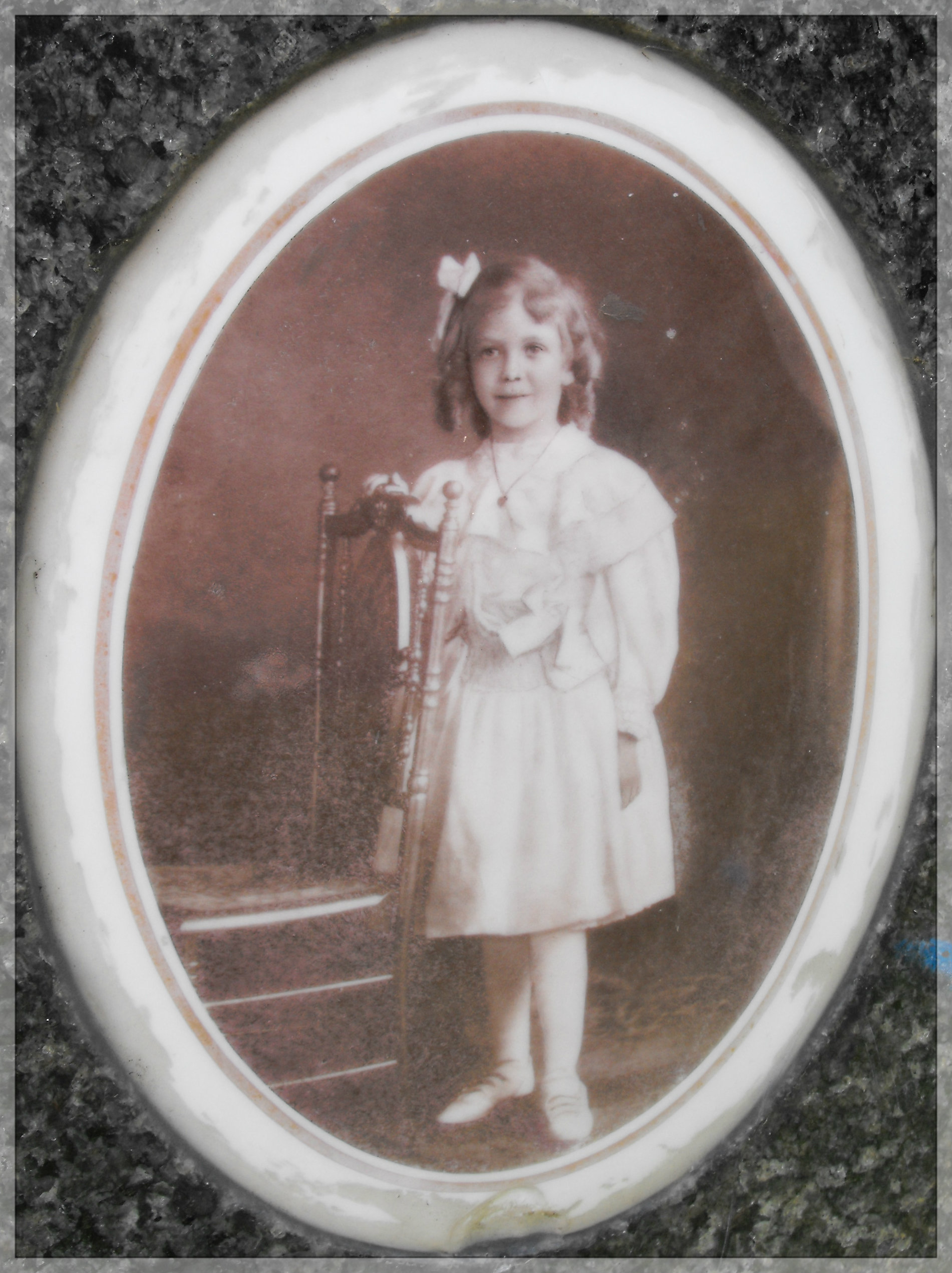 The stone is weathered and broken, but remains a touching remembrance of a young life lost.