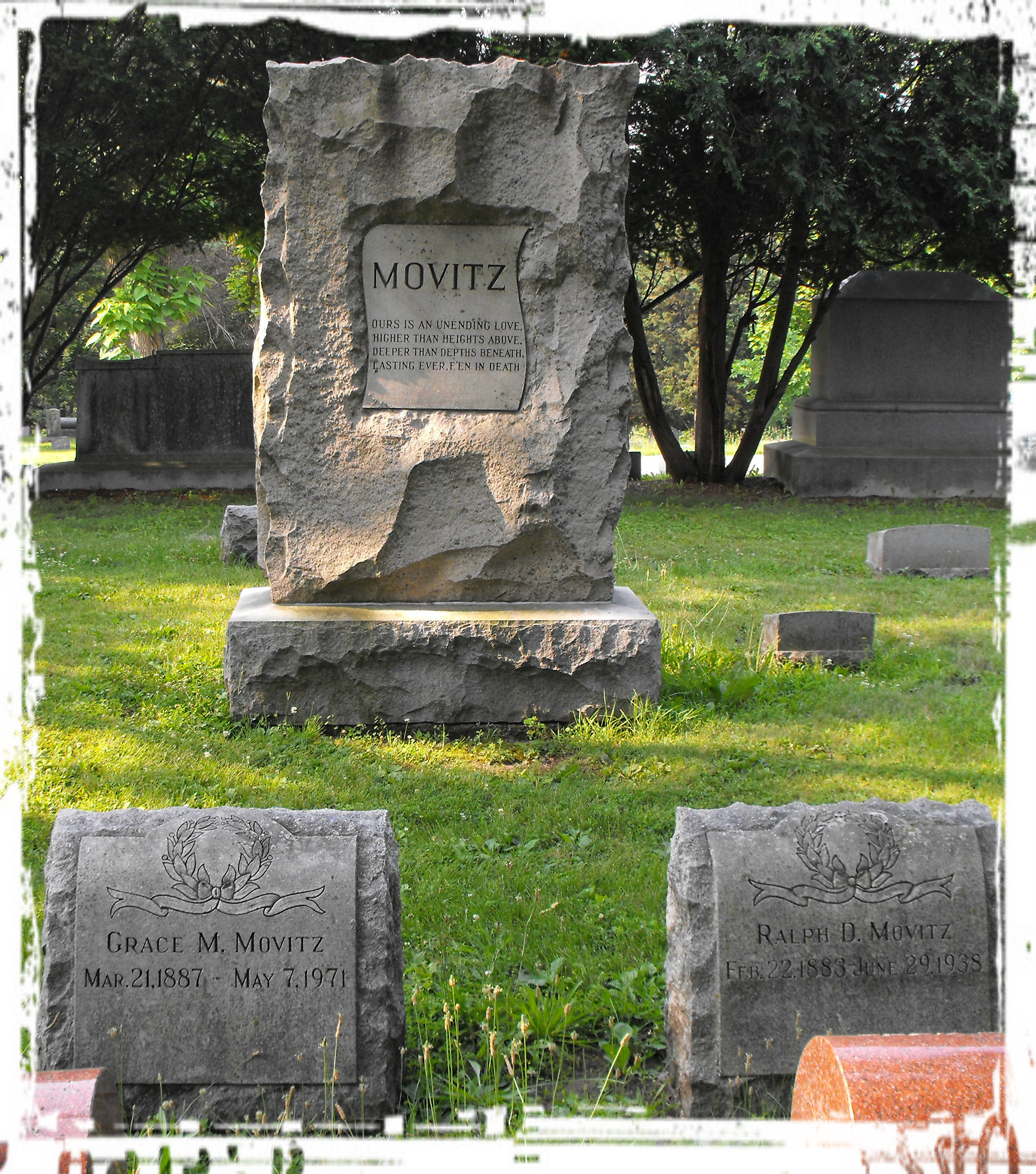 A monument to love stands in a shady section of Bluff City Cemetery in Elgin Illinois.