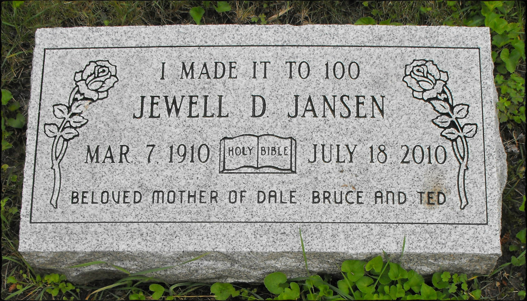 Apparently Jewell’s wish came to fruition. Her milestone can be seen in Chicago’s Irving Park Cemetery:
