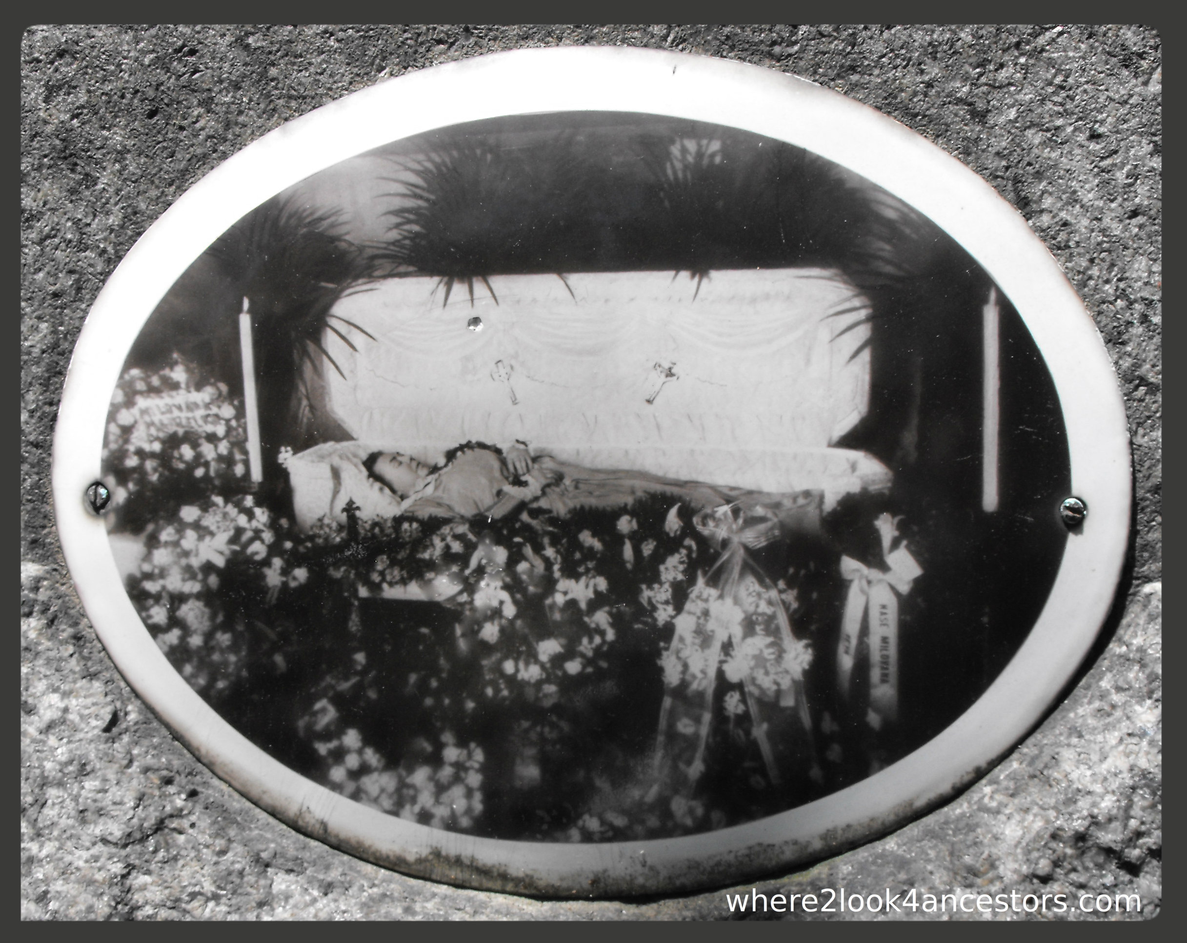 I don’t have any post-mortem photos of my own ancestors, but my husband has several.