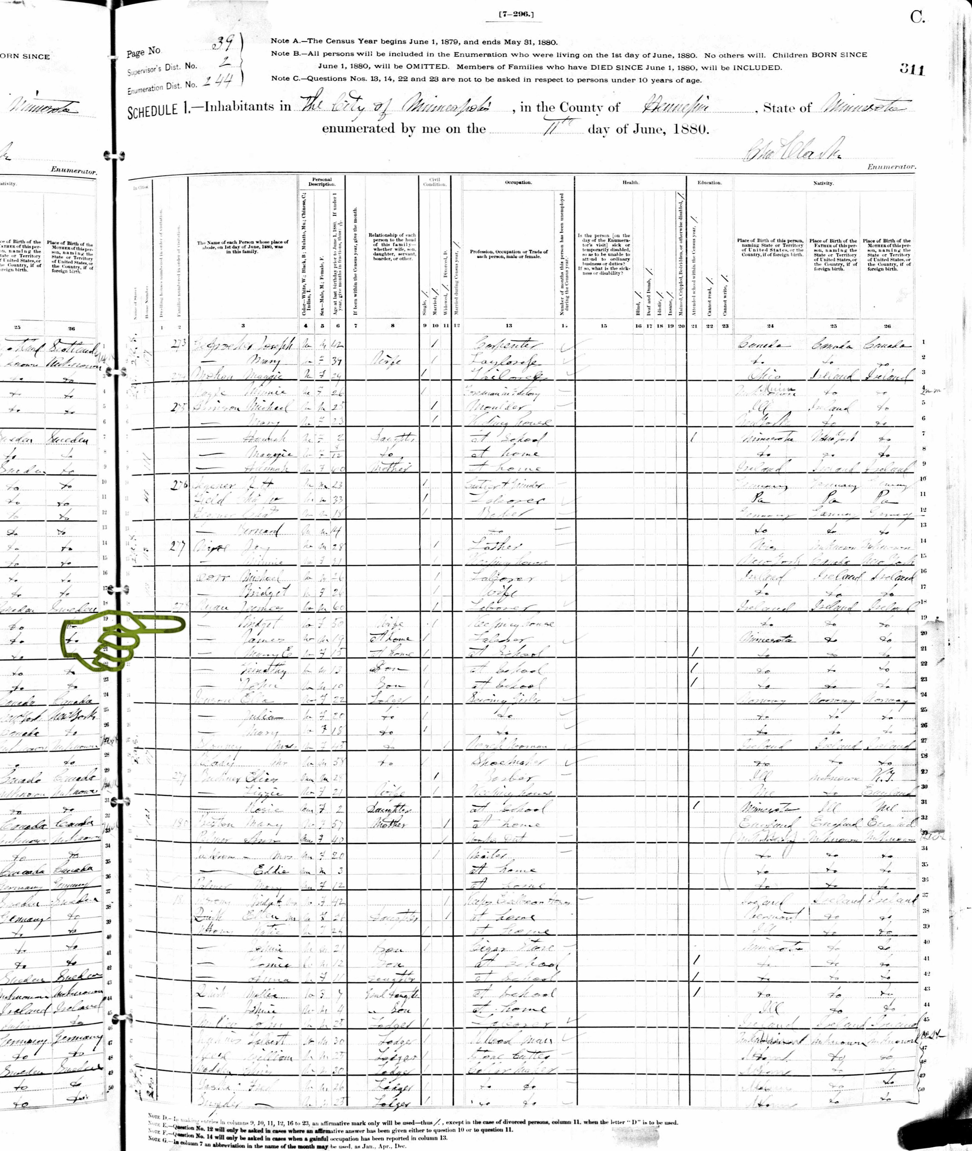 1880 US Census MN Ryan