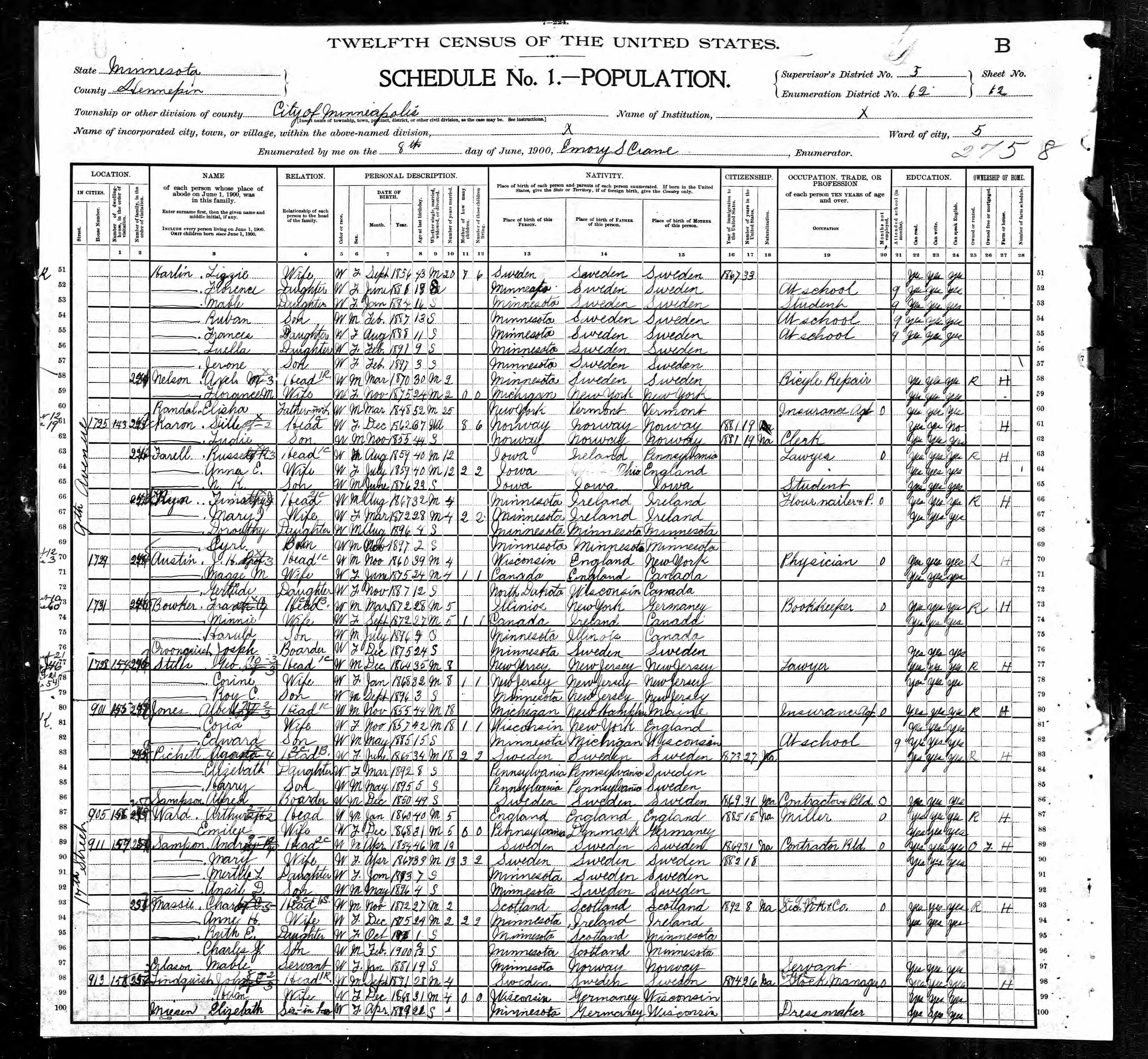 The 1910 census didn’t shed any light. Nor did the 1905 Minnesota state census.