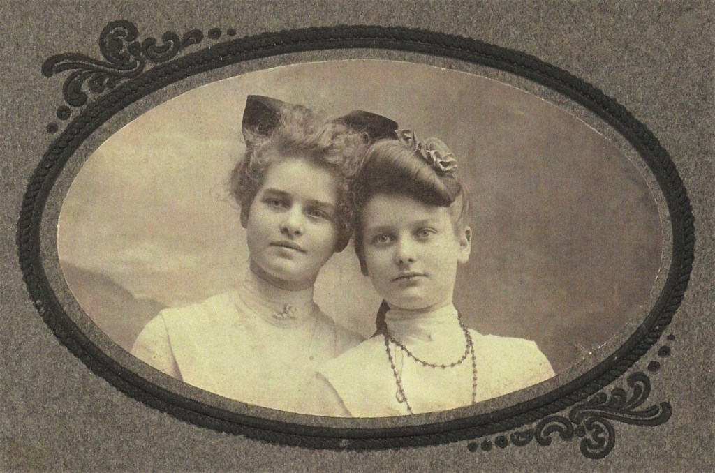 Sisters Esther Maria (on the left in the photo above) and Julia Christine Thompson were 16 and 14 years old respectively when they posed for this portrait in 1902 at the Scholl Studios on Milwaukee Avenue in Chicago.