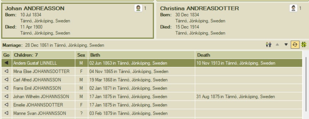 Johan married Christina Andreasdotter and they had seven known children. It’s ever so tempting to search for the dates of death for the children currently missing that information, but my goal is to complete the 1st child’s story before the 2nd, 3rd and so on.
