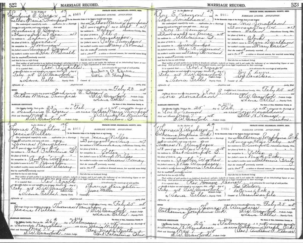 Julia’s older sister Esther Maria Thompson married Ludwig, who was a Swedish immigrant, on the 23rd of February 1918 in Columbiana, Ohio. Originally named Gunnar Ludwig Charles Ågren, Lud’s parents and he immigrated to the United States when he was a toddler. The family settled in New York.