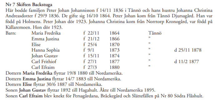 The name these siblings chose is connected to their father Peter Johan Johannesson and refers to the Holmens farm on which he was born. See the third line of the snip from page 166 of ”Åh, du blåe himmel”… Tånnö! Gårdarna och torpen i Tånnö socken below: