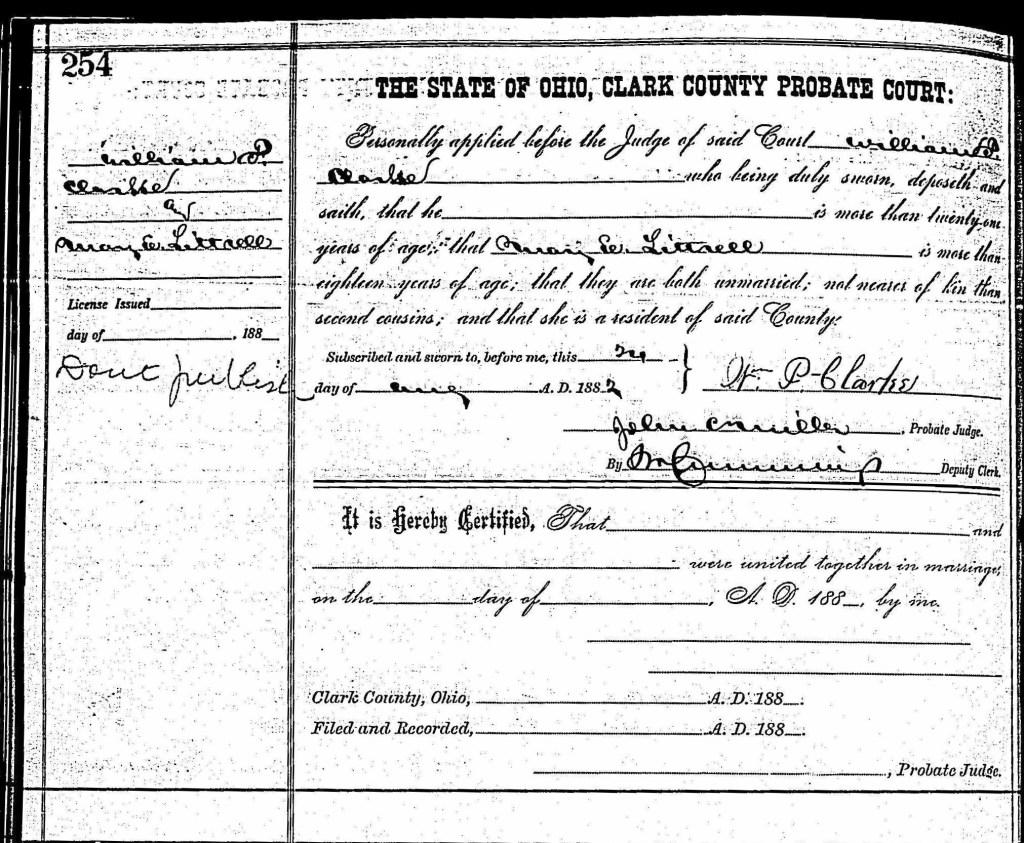 Ellen Gertrude’s parents celebrated their wedding anniversary on August 24th as well. My paternal great-great grandparents William Penrod Clarke and Mary Ella Littrell were married in Springfield Ohio August 24th, 1882.